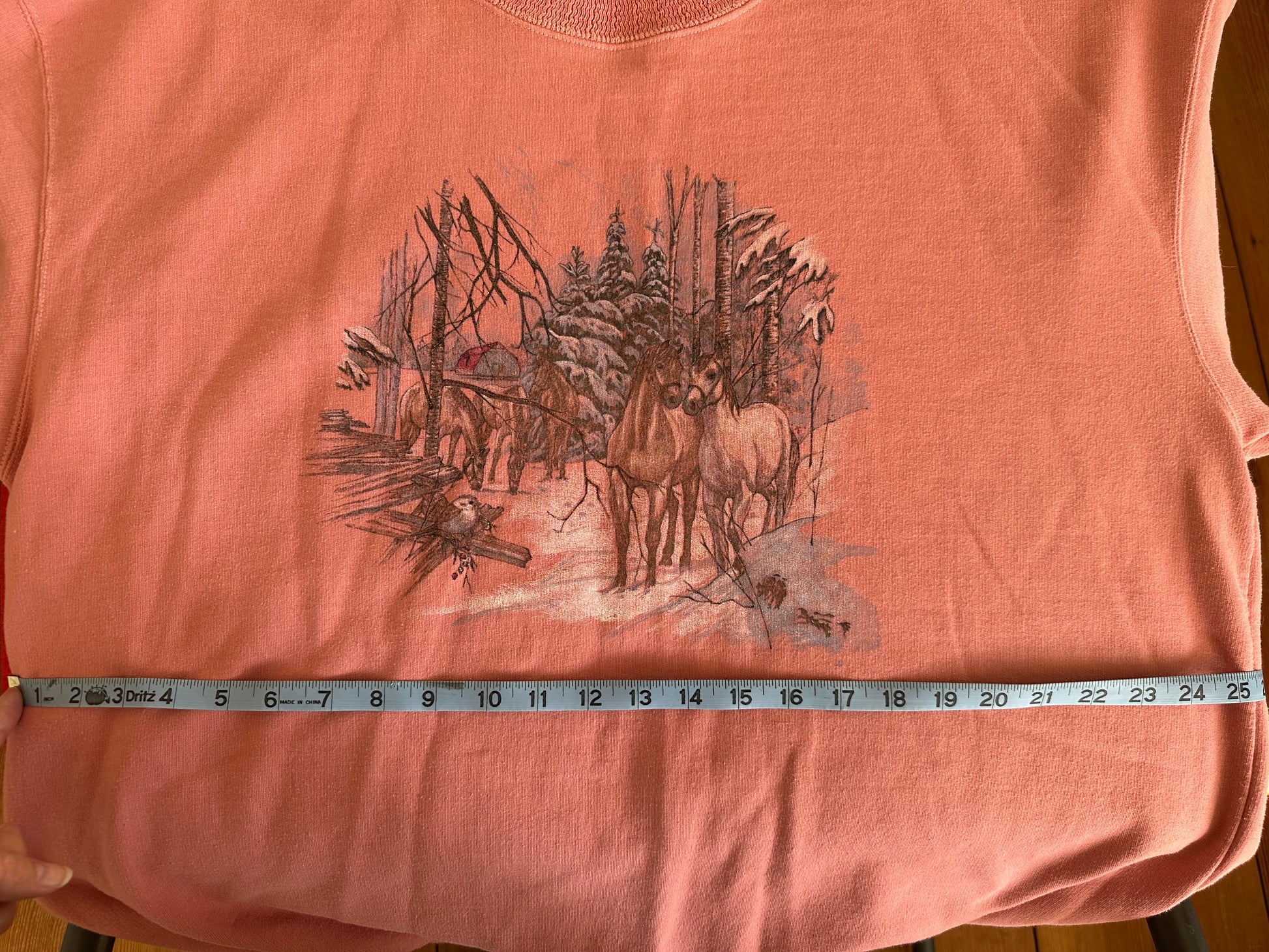 This vintage sweatershirt from the classic brand Northern Treasures. It is a high-quality fleece sweatshirt and in good condition for its age. It's marked an XL but is more like today's L.