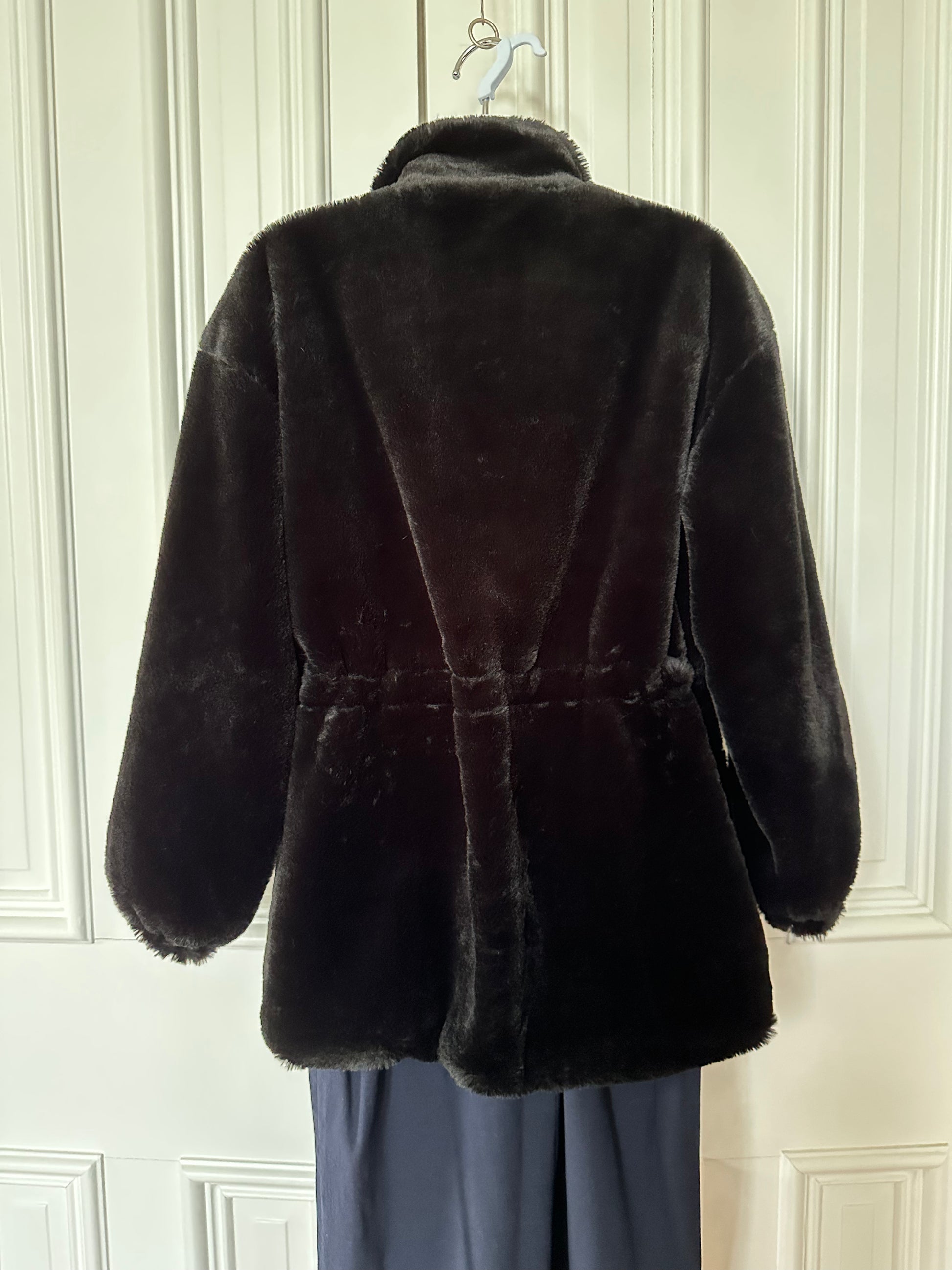 This faux fur beauty from Tahari retailed at $375. This size medium is in perfect condition except for an issue with the drawstring around the waist. It cinches but without gathering the coat fully on the left side. If you are planning to wear this coat unchinched, then you'll be getting a steal.