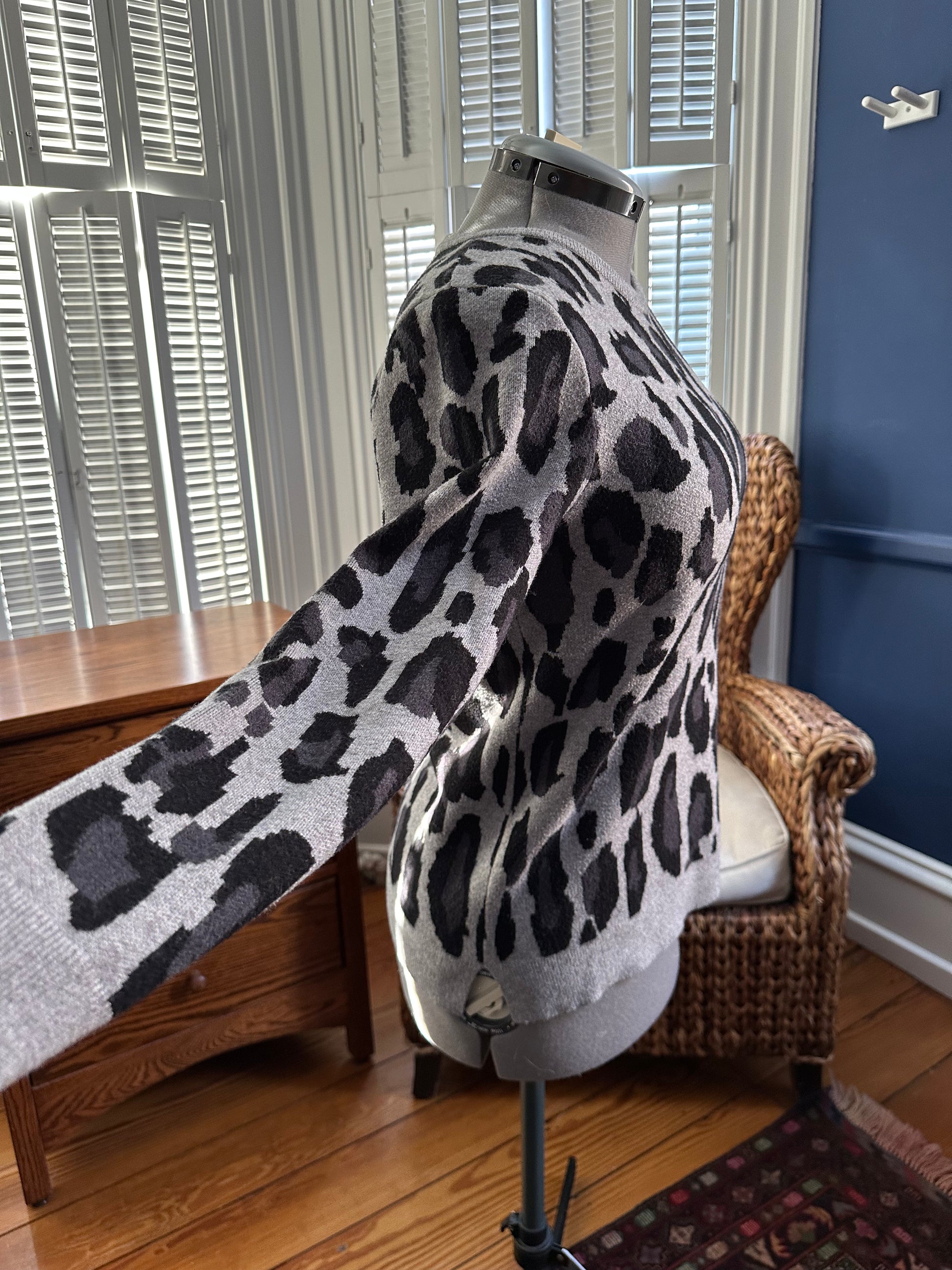 I'm a sucker for an animal print and always love the way Tahari cuts their styles. I had to rescue this from the rack. It's 50% viscose, 29% polyester, and 21% Nylon, which gives it a great drape.