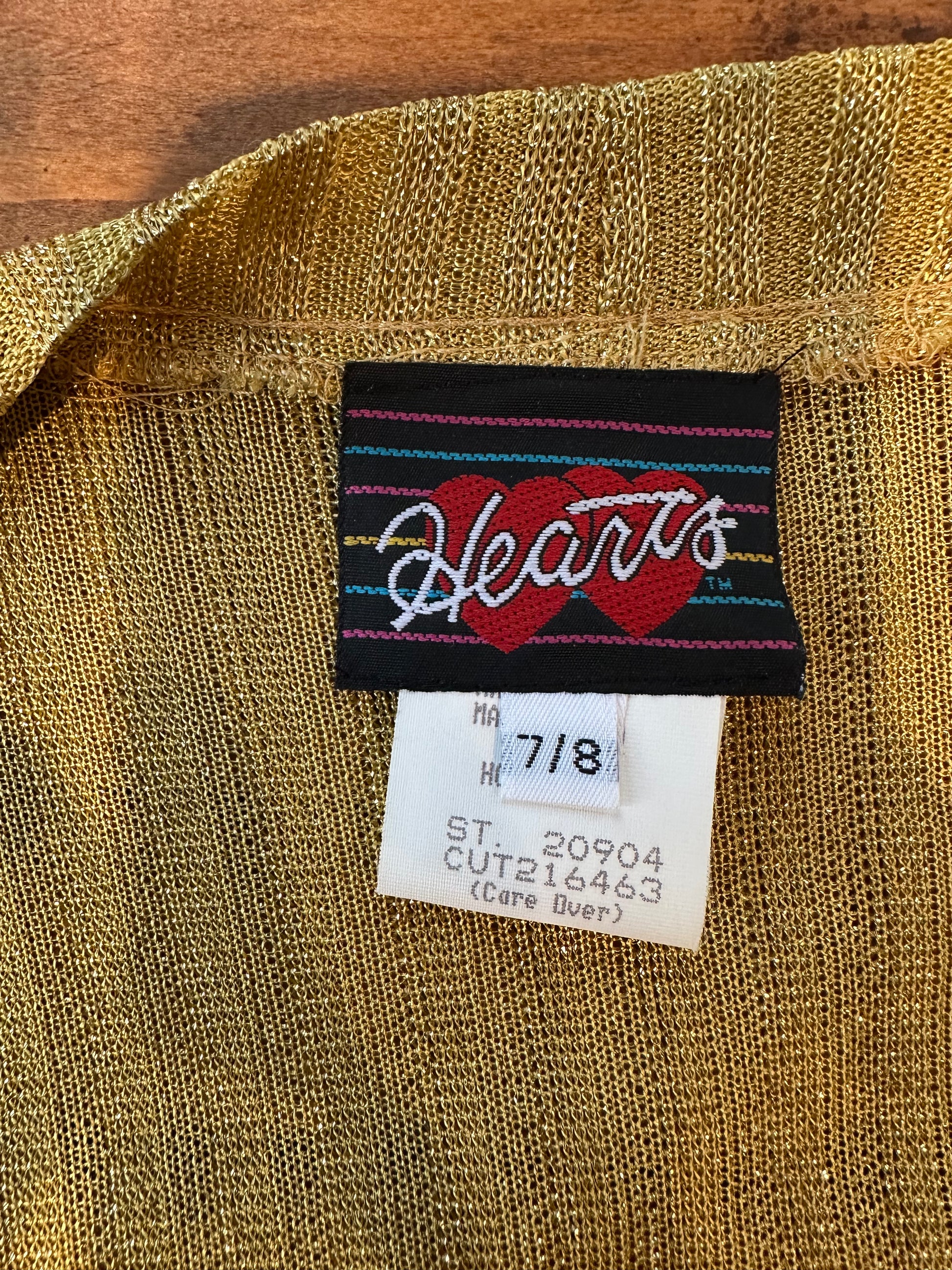 Vintage Hearts Gold Lurex Ribbed Knit Dress and Cardigan Set - 70s Metallic Glam