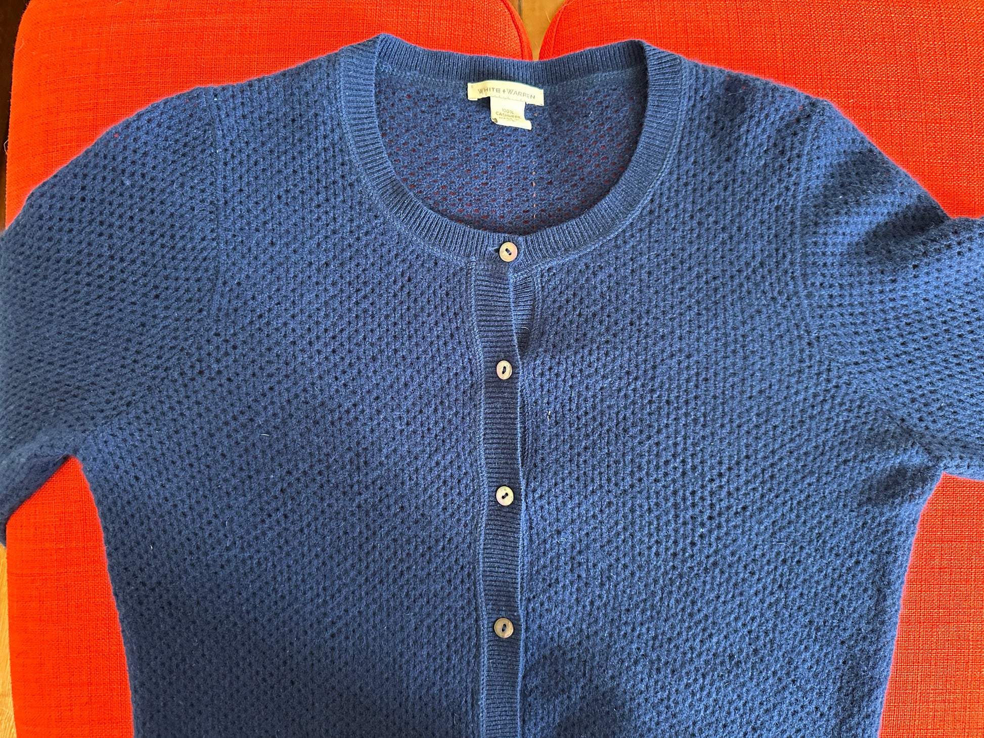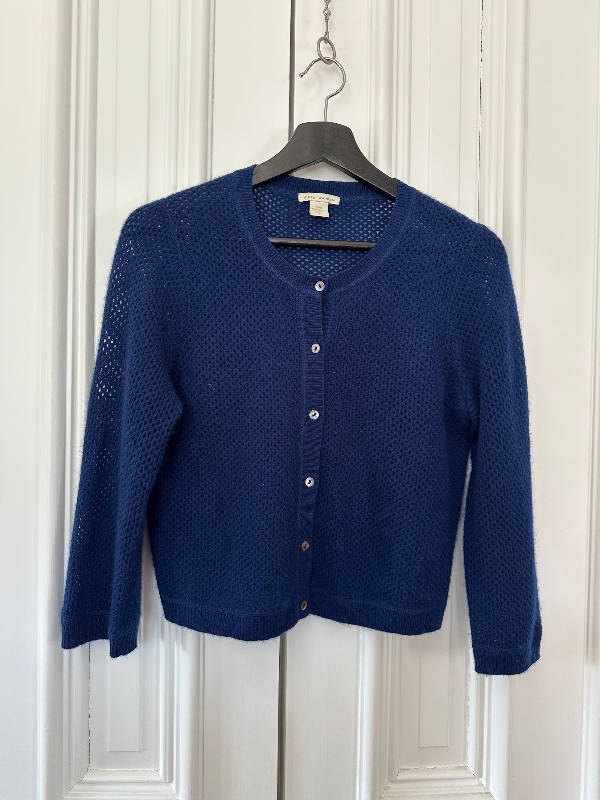 This royal blue crop cardigan from White and Warren is knit with a mesh stitch, and is feather light. Perfect over an Easter dress, or pair with black trousers and a blouse for the office.